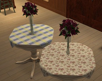 テーブルクロスの自作リカラー。分かりにくいですが、ガラスの花瓶に注目。