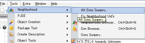 Tools > Neighborhood > Alt Sims Surgeryを選択。
