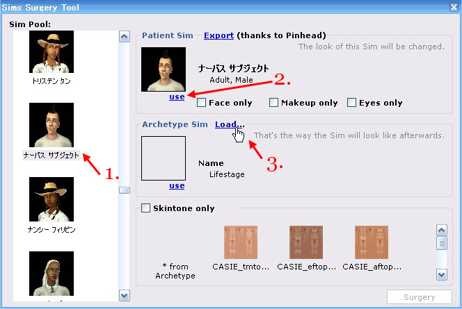 この「Alternate Sim Surgery Plugin」は、容姿の元となるデータを、BodyShopで作成したシムのデータから直接持ってくることが出来ます。