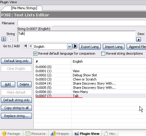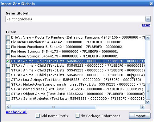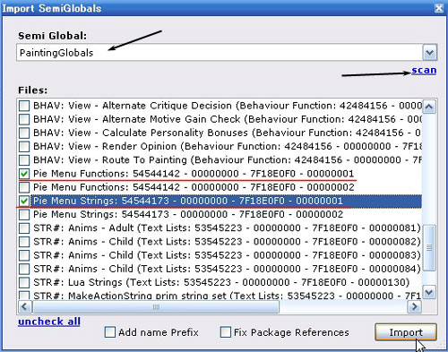 ずらっと出てきたら、uncheck allでチェックをいったん全てはずし、Instanceが0x1のTTAs(Pie Menu Strings)と、同じくInstanceが0x1のTTAB(Pie menu functions)にチェックを入れてOKします。