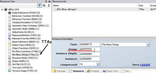 インポートしたら、忘れずにGroupを0xFFFFFFFFに変更しておきます!(←私はここでうっかり忘れて、BHAVいじっていた時にはじめて気がつきました;)