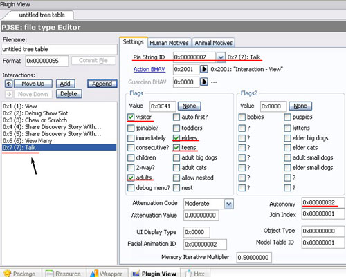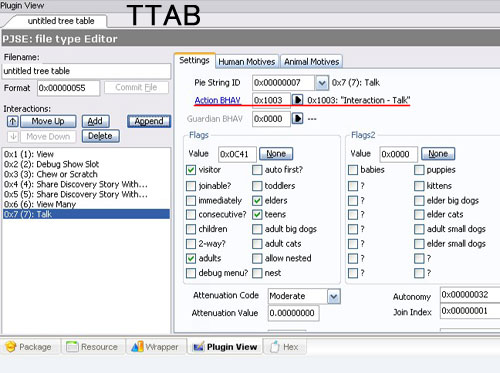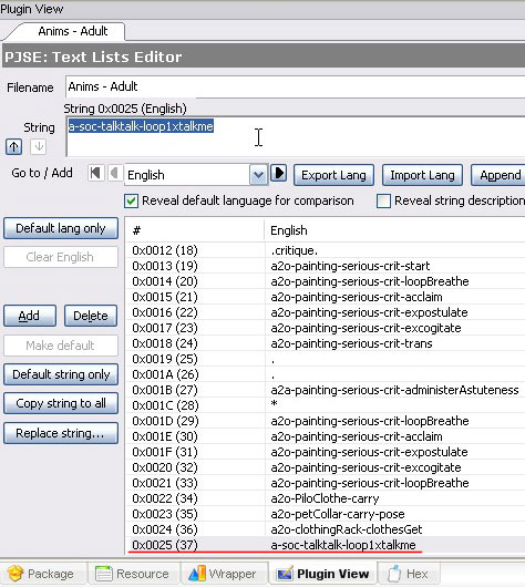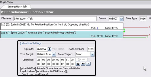 とりあえずもう一度Packageファイルを開けて、アニメーションの名前がリストに存在していること、BHAV内でも正しく指定されている事を確認しました。何がいけないのかさっぱり分からなかったので、どこもいじらずに閉じました。