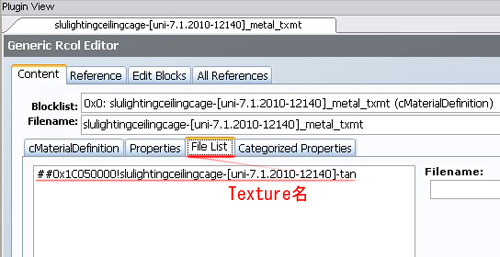 テクスチャー名の頭に「##0x1C050000!」を足して、末尾の「_txtr」は削除します。
