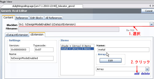 「Block List」のプルダウンから、「tsNoShadow」を選びます(無かったらこの作業は飛ばして構いません)。